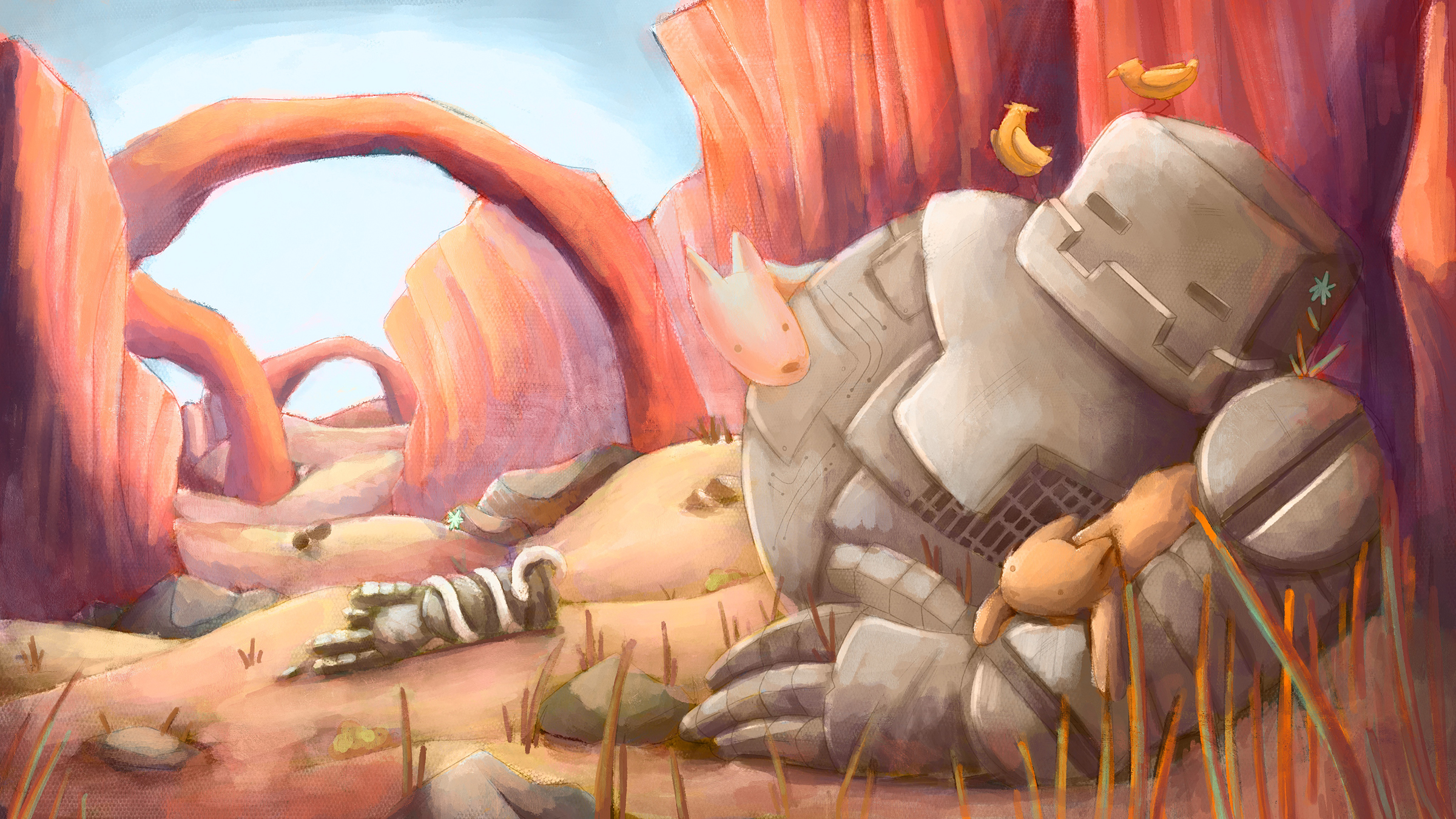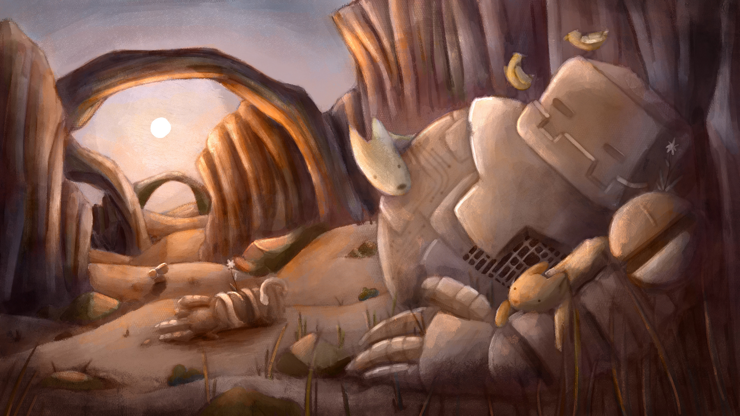 Mechs featured in a wild west setting. Exploring the same composition in different lighting and moods.